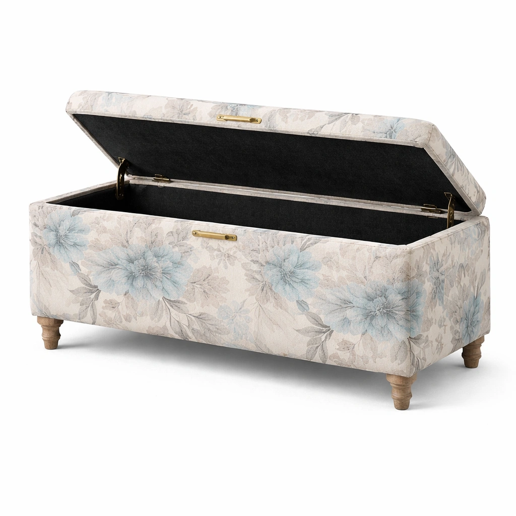 Banco con almacenamiento tapizado en tela de poliéster con estampado floral 120x40x45 cm